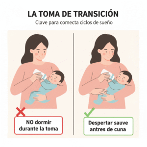 La Solución: Despertar el Último Minuto (La “Tope-Off”): Dale la toma, pero asegúrate de que, antes de meterlo en la cuna, el bebé esté ligeramente despierto. Si se durmió comiendo, despiértalo suavemente (con un cambio de pañal, o con un toque en el pie) antes de acostarlo.
