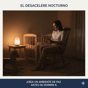 Ya entendimos que para que el bebé duerma bien de noche, el día tiene que estar bien estructurado (rutina Comer-Jugar-Dormir, Lección 2.1). Ahora, la pregunta es: ¿Cómo hago la transición del juego activo del día al sueño profundo de la noche?